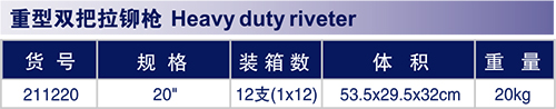 ●用于铆接铝、铜、铁和不锈钢铆钉。 ●可适合铆钉规格:Ø3.2mm、 Ø 4.0mm、 Ø 5.0mm 、 Ø 6.0mm 、 Ø 8.0mm ,附一把小扳手。