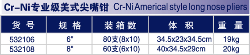 Cr-Ni专业级美式尖嘴钳